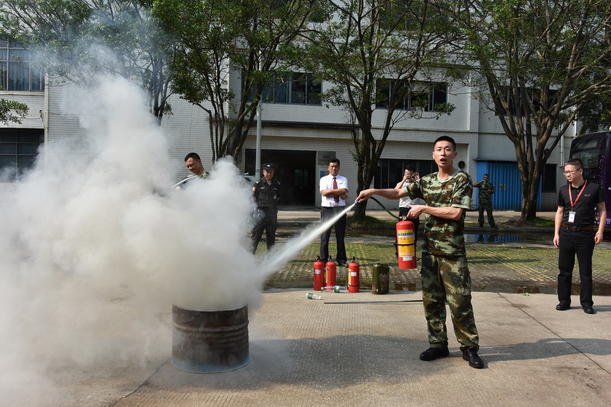 接著苗班長給我們講解了滅火器的正確使用方法,并給我們做了規(guī)范演示。