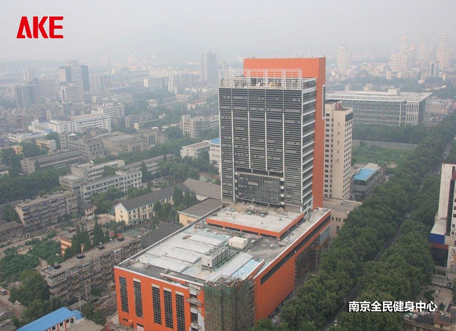 南京全民健身中心是中國第一座高層體育健身中心,也是中國單體建筑面積最大的健身中心。建筑高度達100米,其中主樓地上19層,地下2層,占地13500平方米,總建筑面積有7萬平方米。