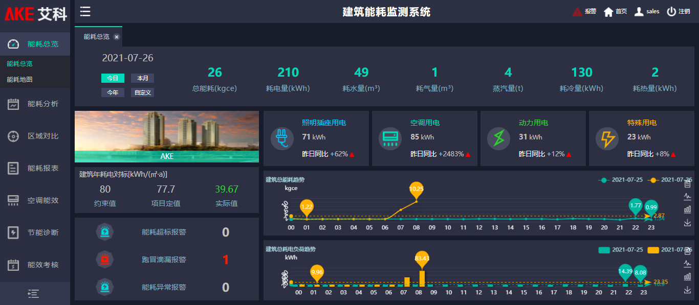 管理促節(jié)能,通過我司智慧建筑能源管理平臺可了解建筑整體的能源消耗情況,對能耗指標(biāo)進行逐級分解,從而降低能耗。
